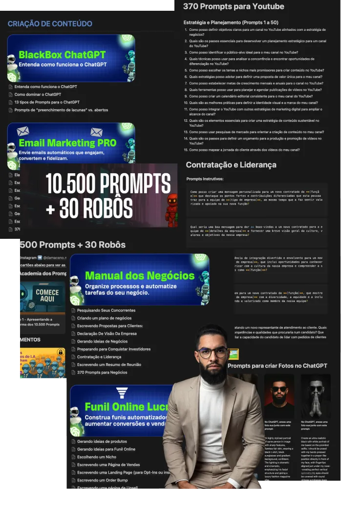 Veja tudo que você vai receber nos +10.500 Prompts do ChatGPT/Gemini: