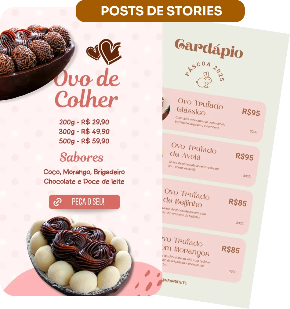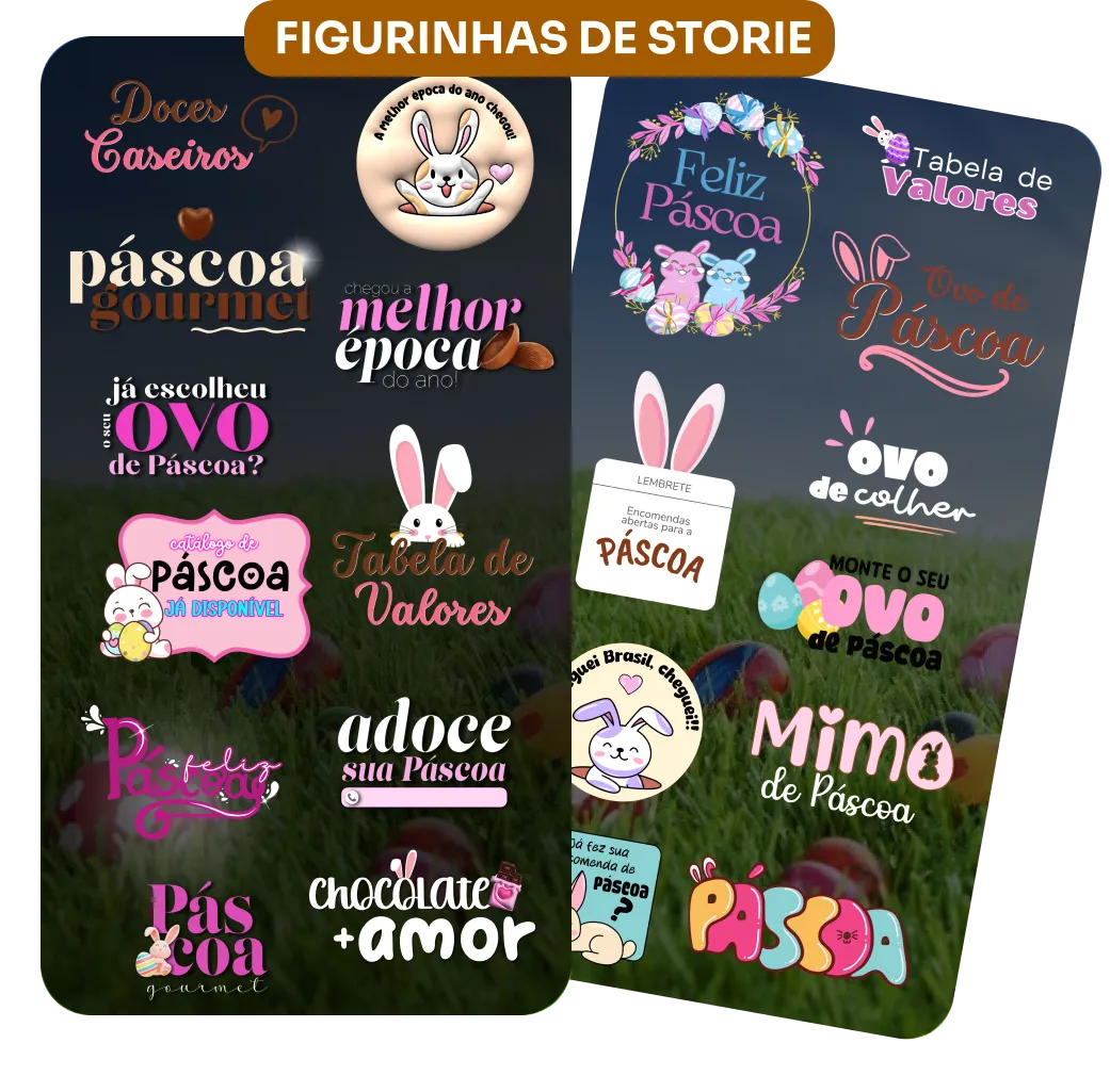 Você vai ter em suas mãos as ferramentas certas para calcular, organizar e vender sua Páscoa com segurança — incluindo figurinhas, posts prontos e o calculadora de preço e lucro.
