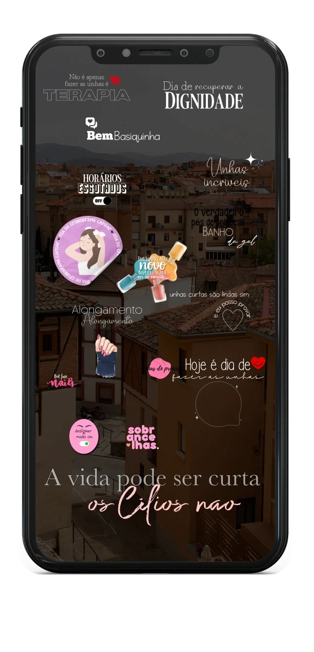 ✔︎Pacote de stories montados com figurinhas + sombras aplicadas